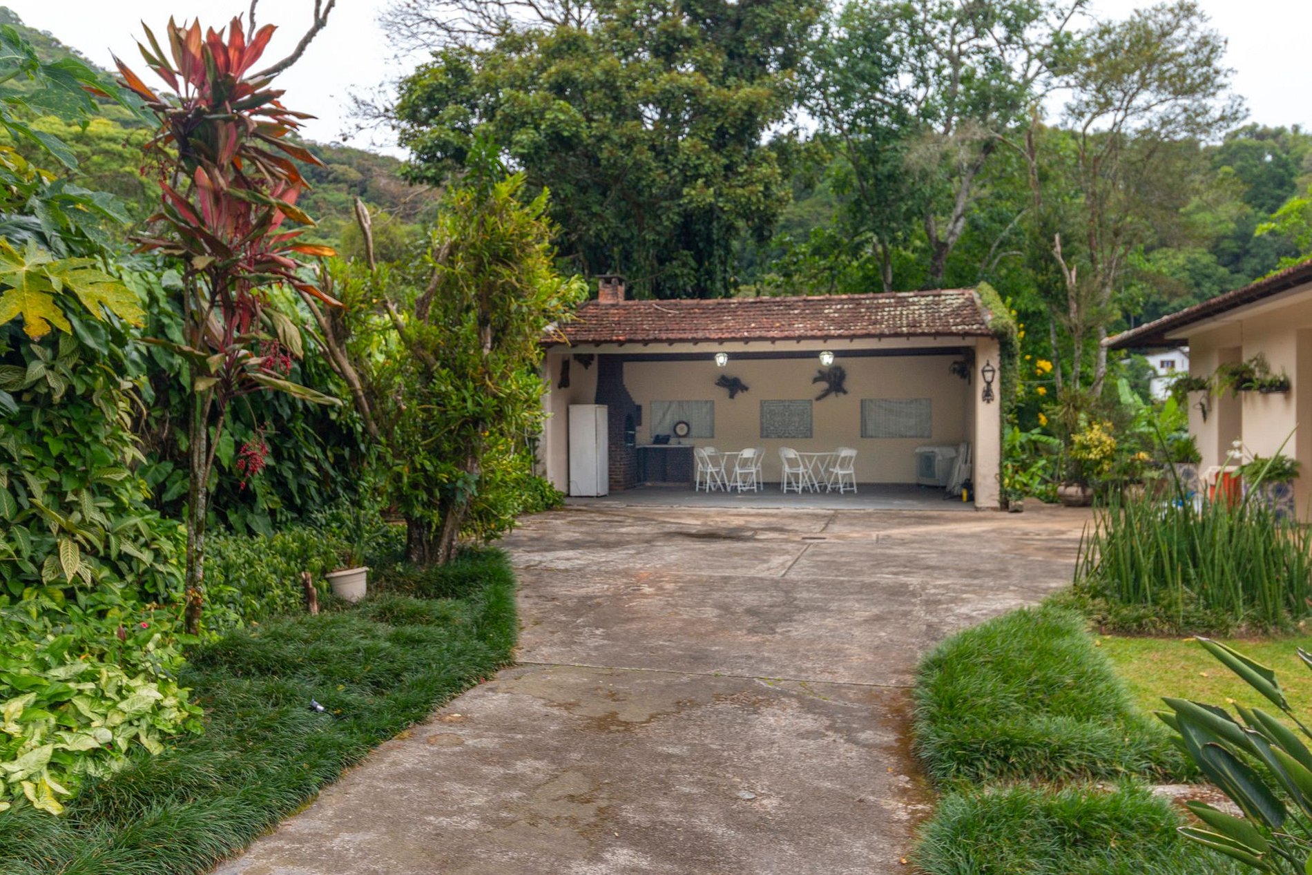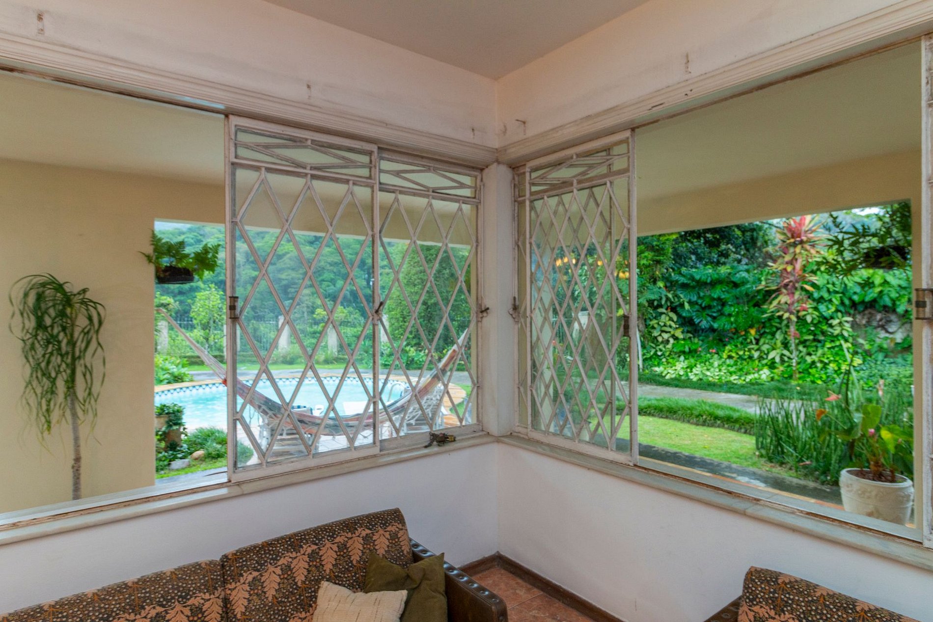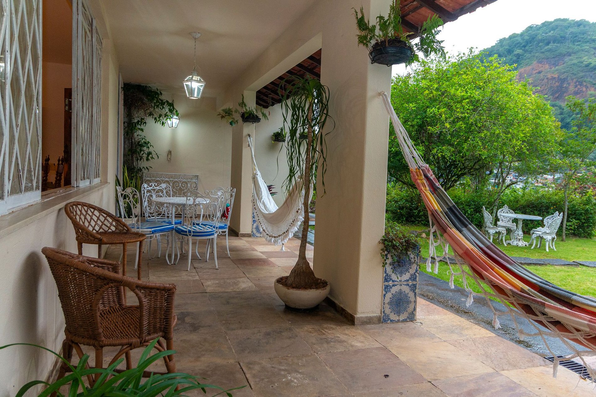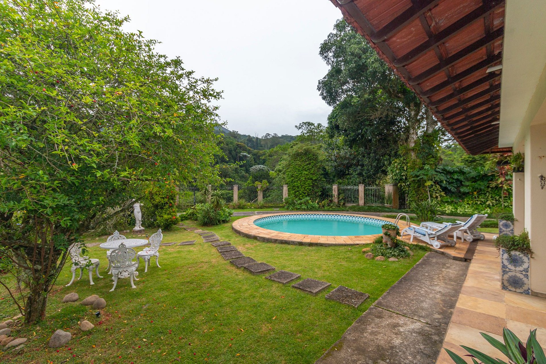 A área externa é um dos grandes encantos: jardim amplo, piscina com vista para a montanha e uma varanda com redes que é um convite ao descanso. A churrasqueira coberta completa o espaço e torna tudo ainda melhor para reunir família e amigos.