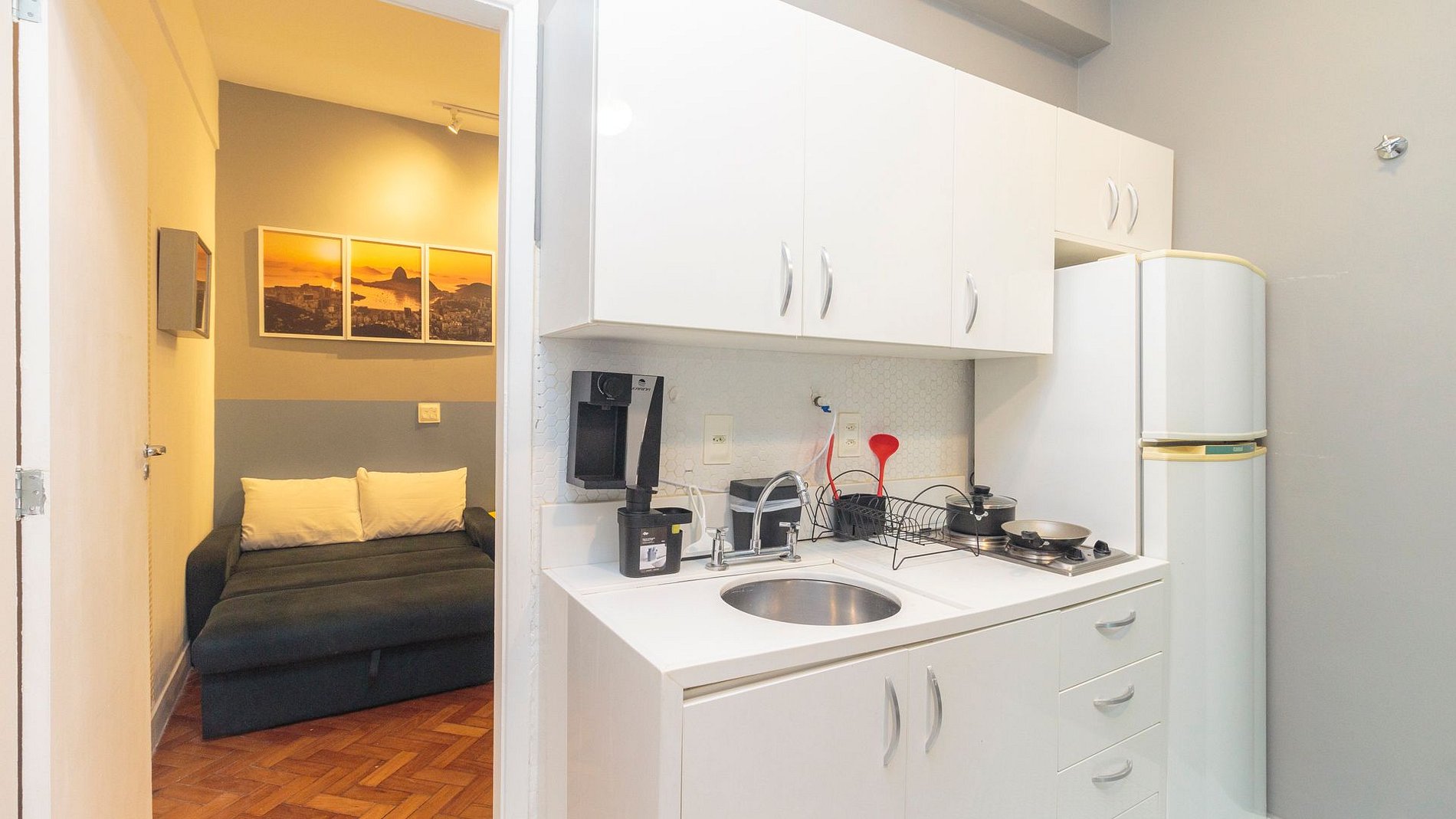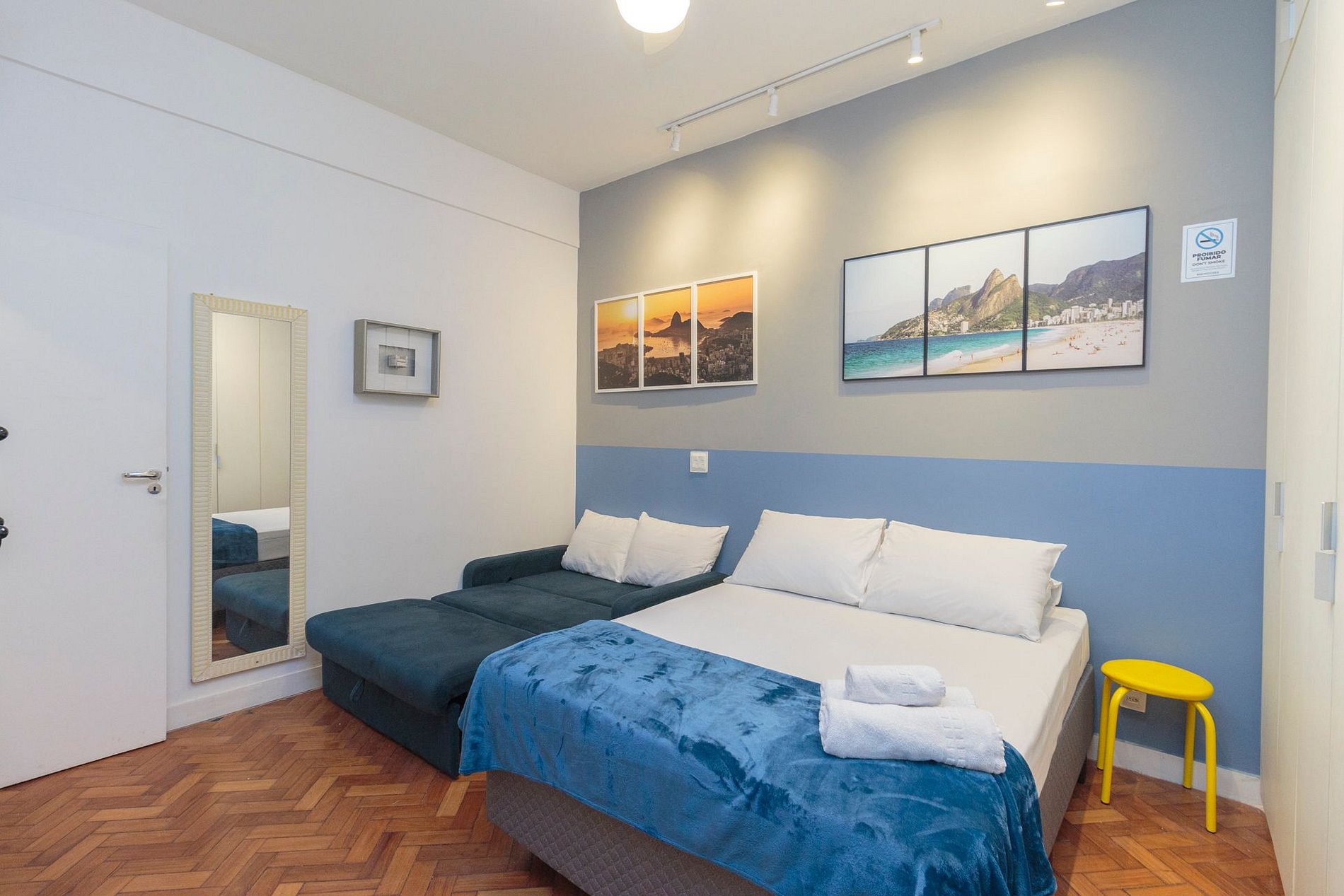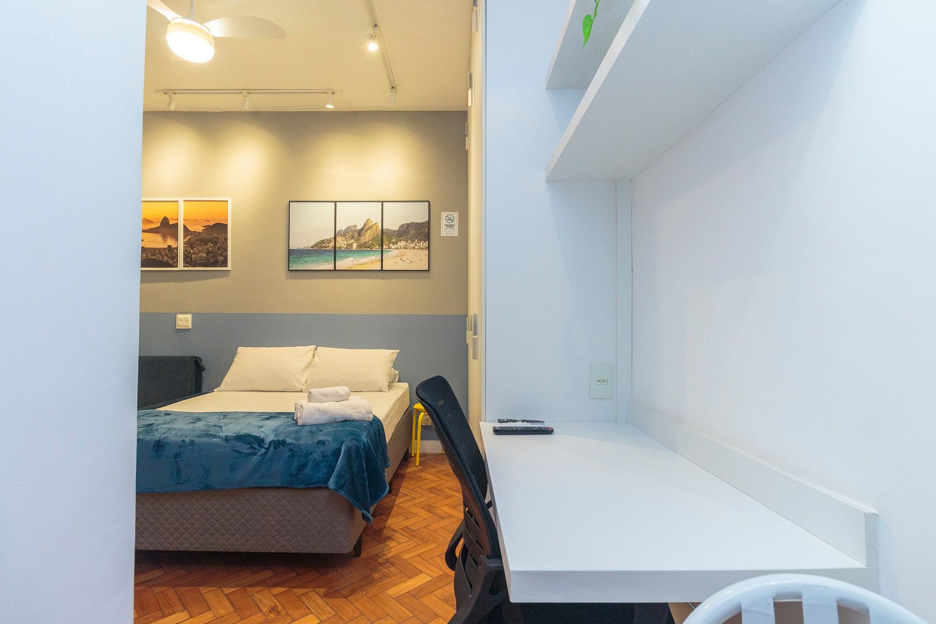Completo, prático e bem localizado, o espaço oferece tudo o que você precisa para uma estadia confortável no coração de Copacabana. A acomodação recebe até 3 hóspedes e conta com cama de casal, sofá-cama de solteiro, ar-condicionado, Wi-fi de alta velocidade, mesa de trabalho e máquina de lavar roupas.