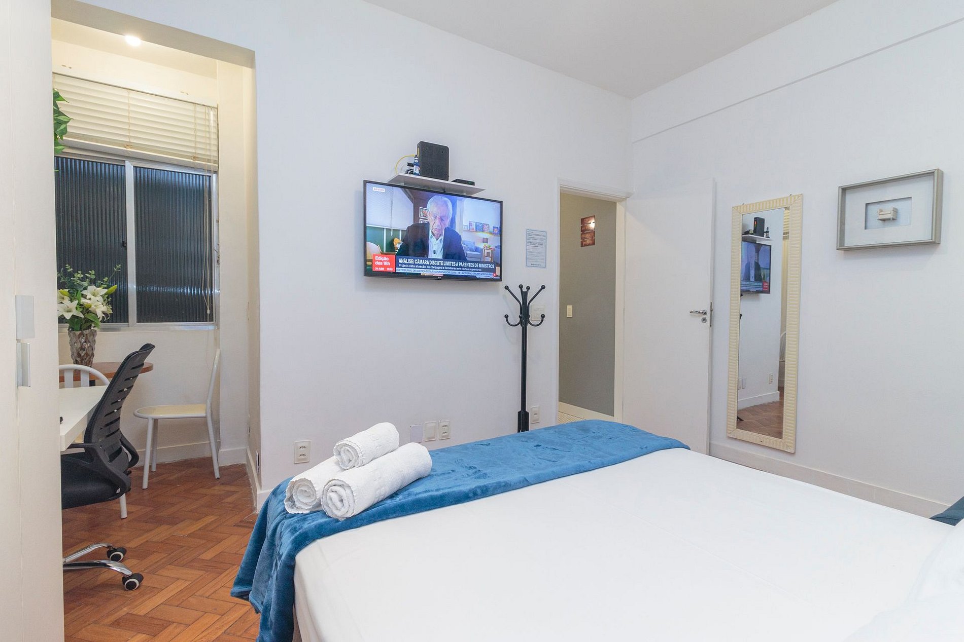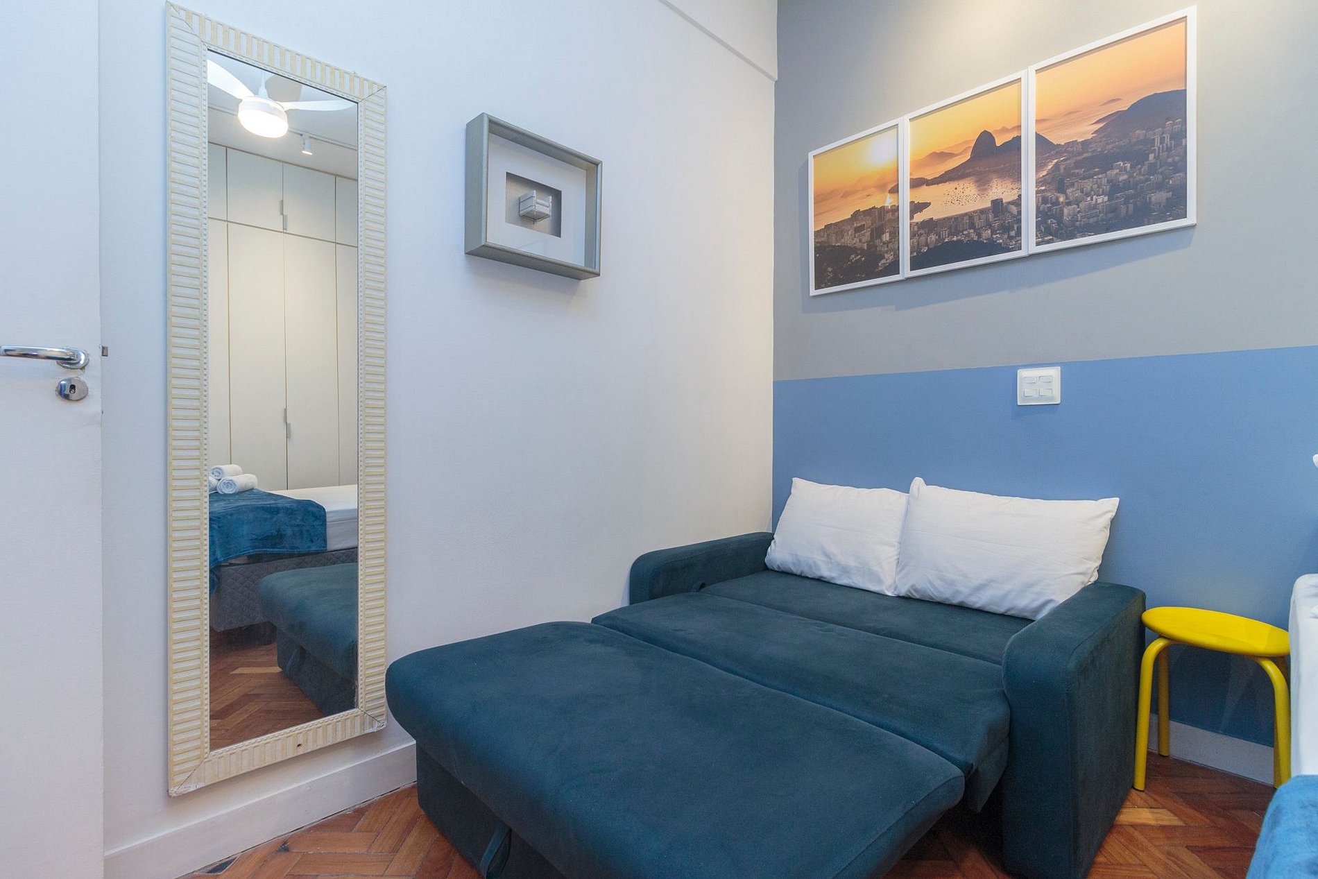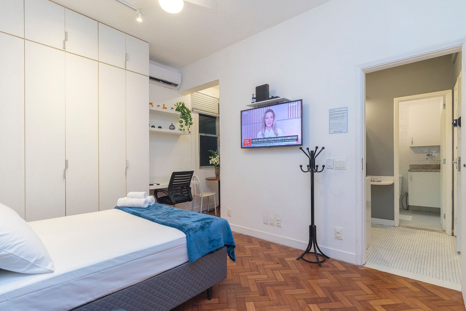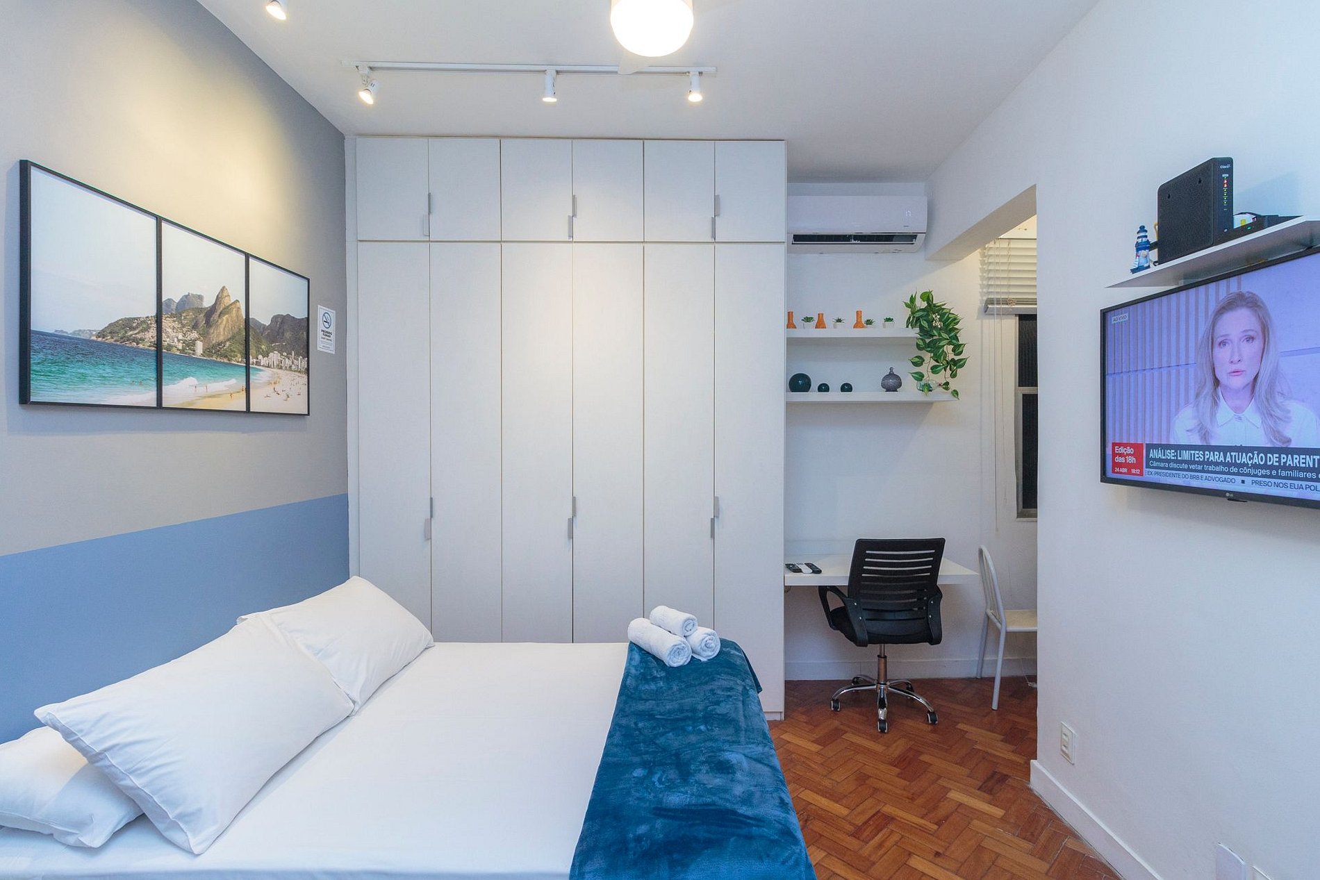 Completo, prático e bem localizado, o espaço oferece tudo o que você precisa para uma estadia confortável no coração de Copacabana. A acomodação recebe até 3 hóspedes e conta com cama de casal, sofá-cama de solteiro, ar-condicionado, Wi-fi de alta velocidade, mesa de trabalho e máquina de lavar roupas.
