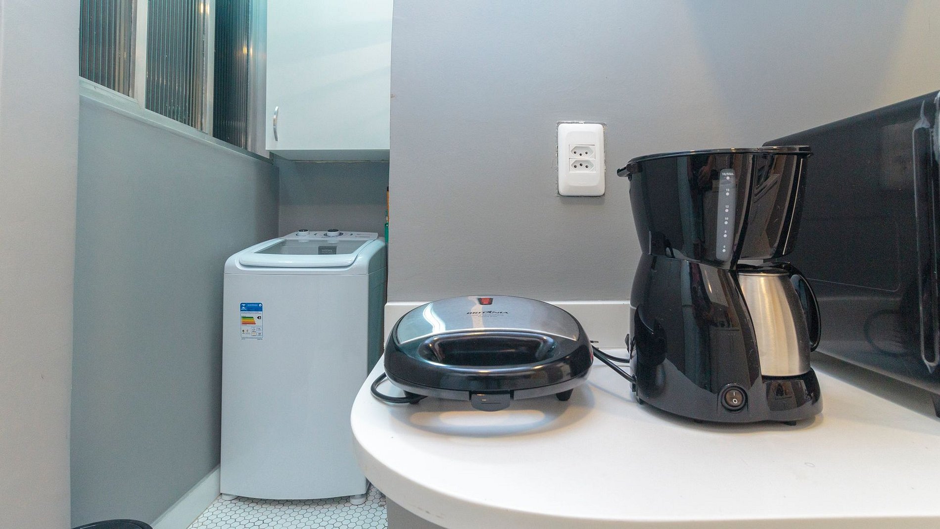 Há disponível também conta uma área de apoio com máquina de lavar e ferro de passar.