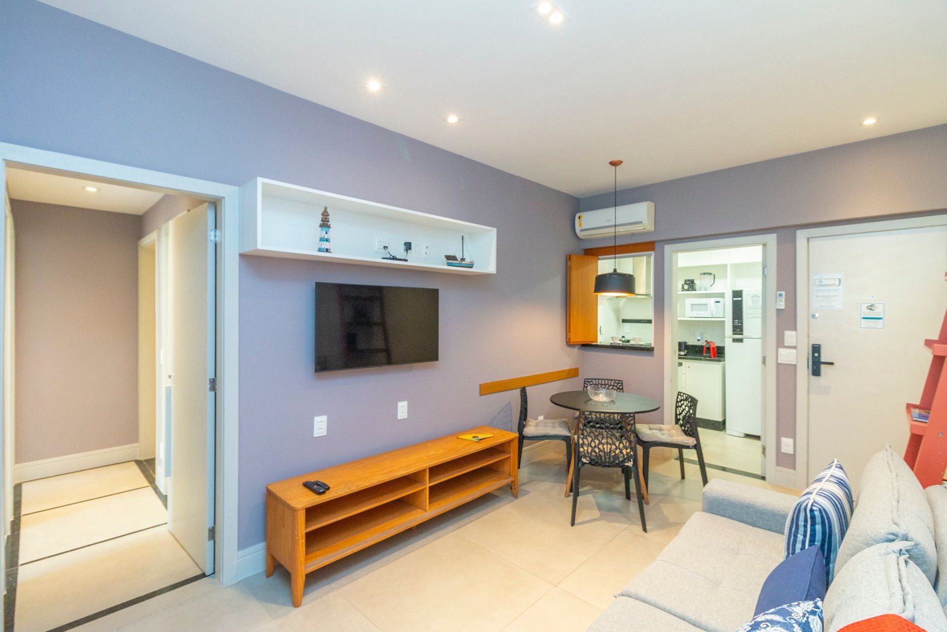 Este apartamento recém-reformado foi planejado para oferecer conforto, praticidade e uma experiência completa na melhor localização da Zona Sul. A sala de estar integrada à sala de jantar conta com sofá-cama de casal, Smart TV, mesa para 4 pessoas, espaço de trabalho com mesa e cadeira, ar-condicionado e Wi-Fi de alta velocidade que cobre todo o imóvel.