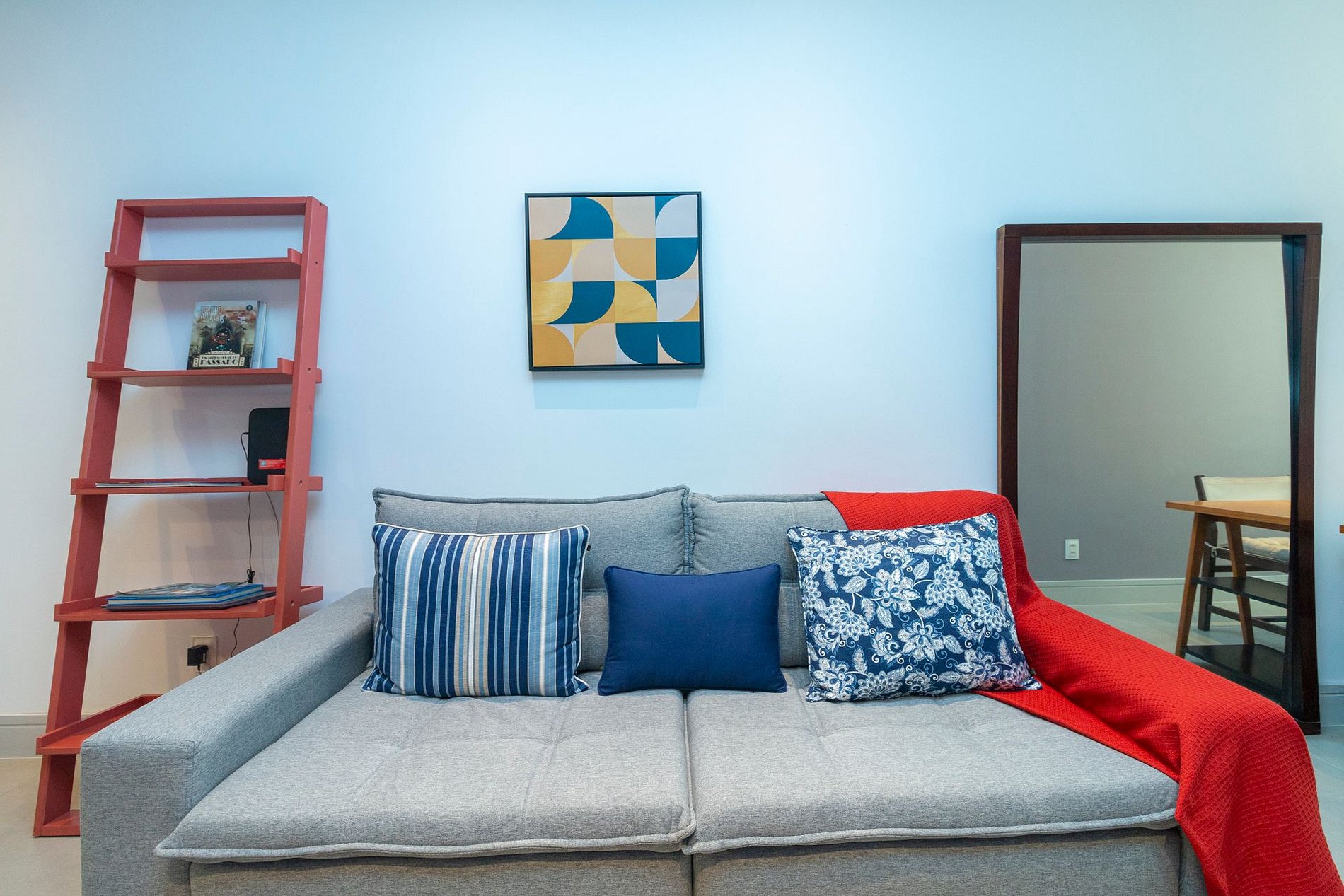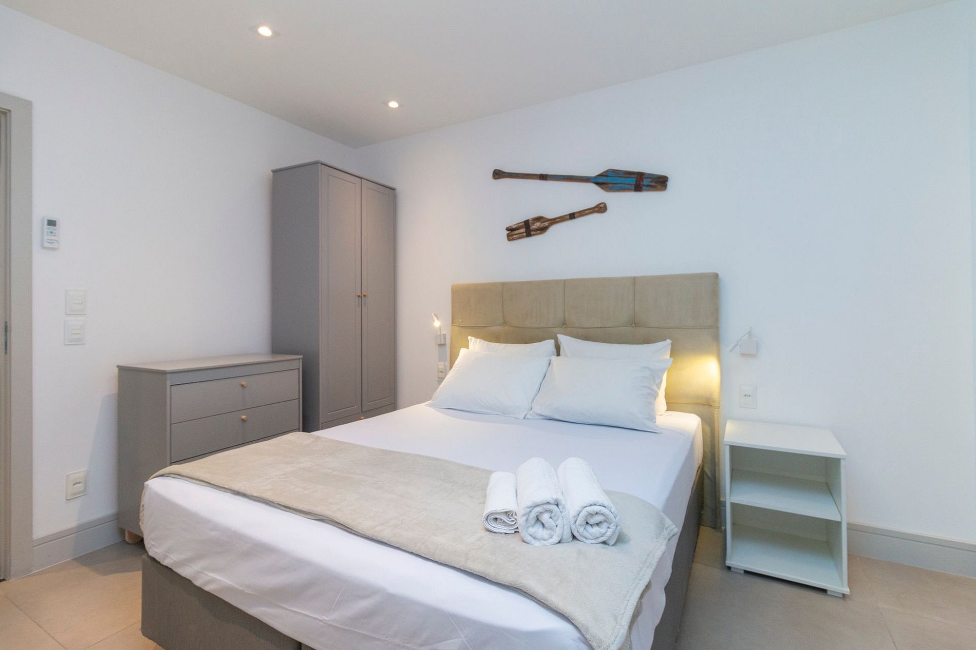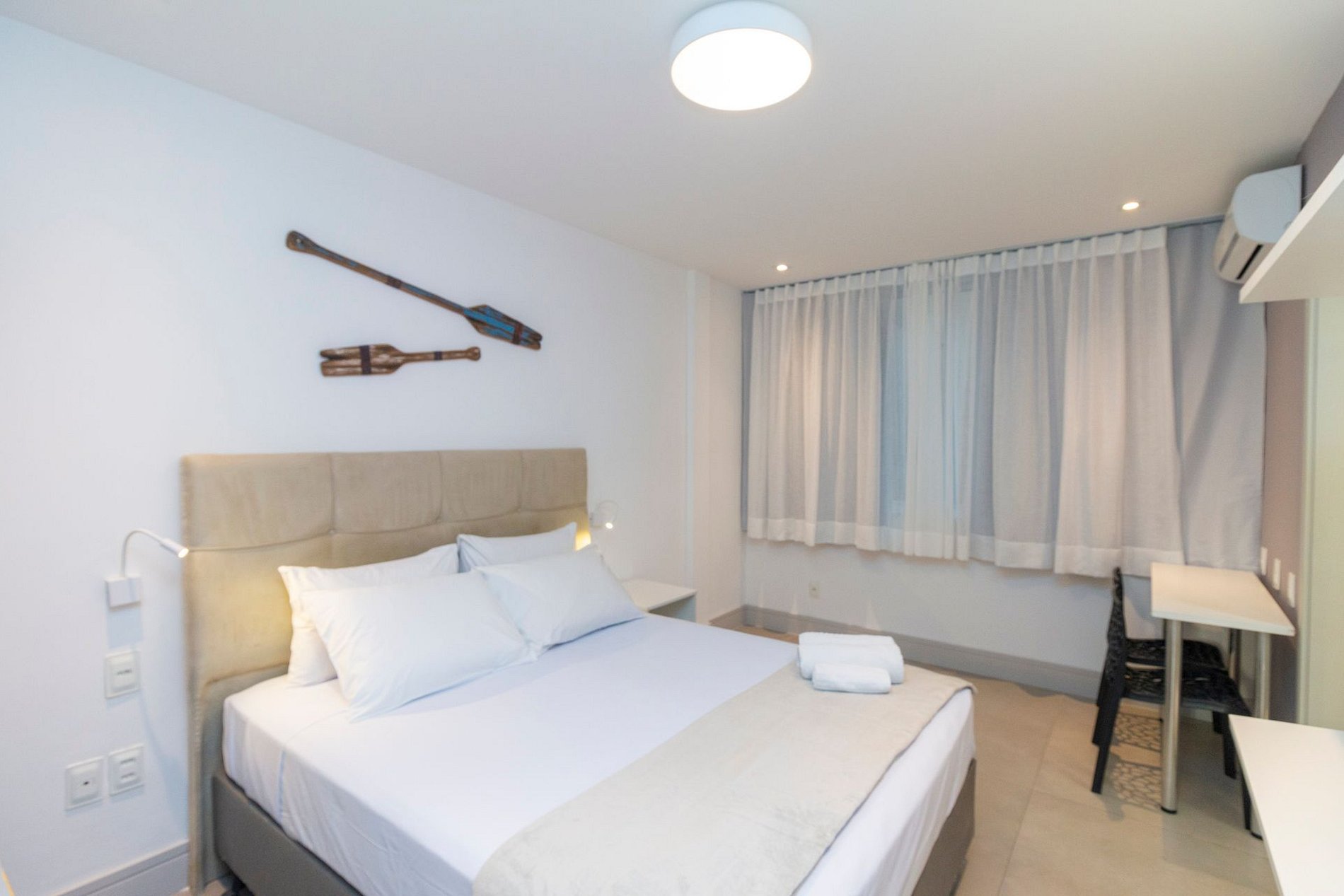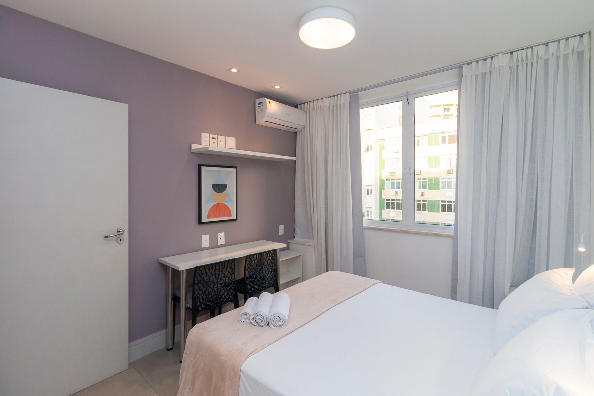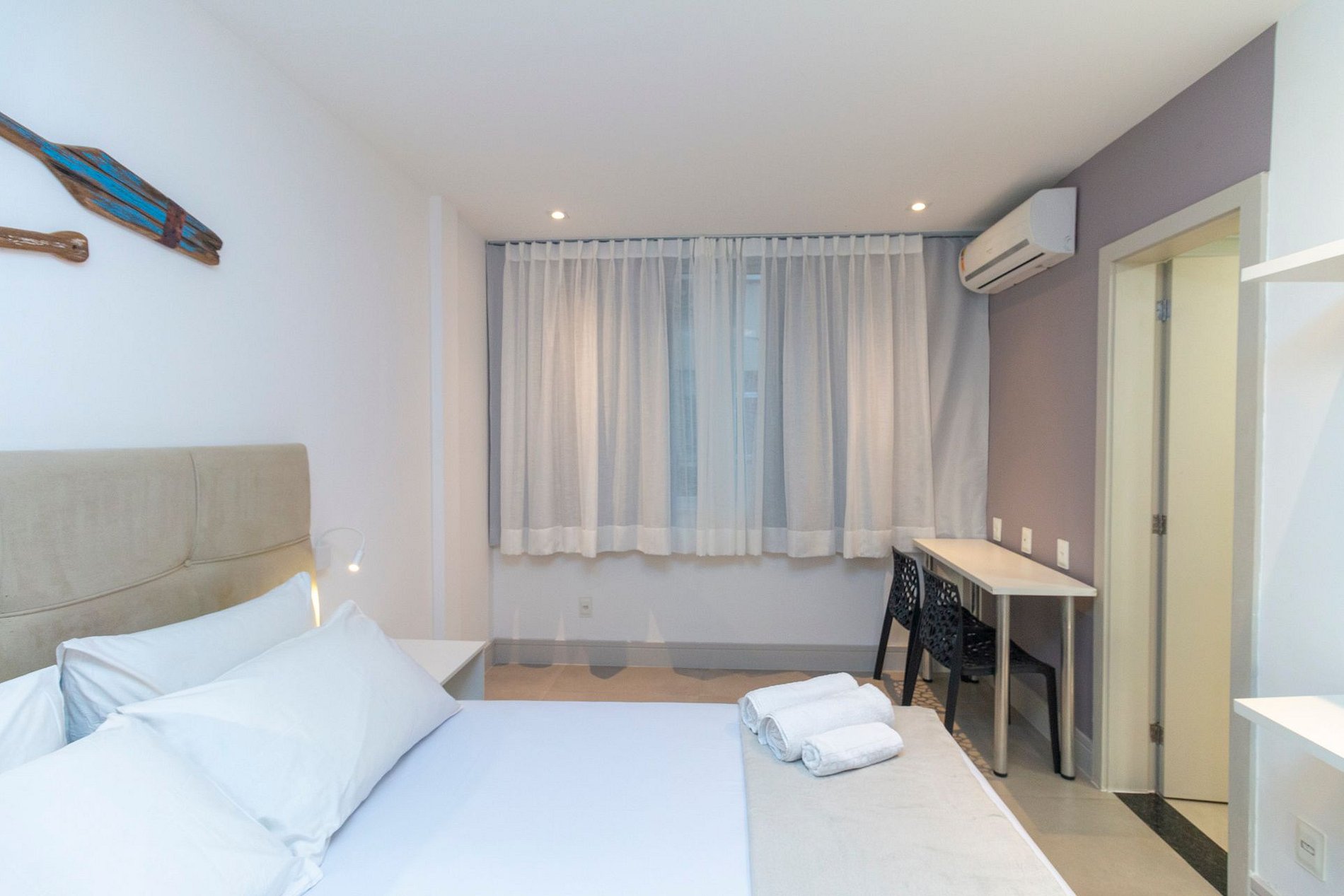 Possui 1 suíte com cama queen, 1 quarto com cama queen, 1 quarto com cama de casal e 1 sofá-cama de casal na sala, todos os quartos com ar-condicionado para maior conforto. Ideal para famílias e grupos que desejam ficar na melhor localização da Zona Sul, perto da praia, comércio, restaurantes e fácil acesso ao metrô.