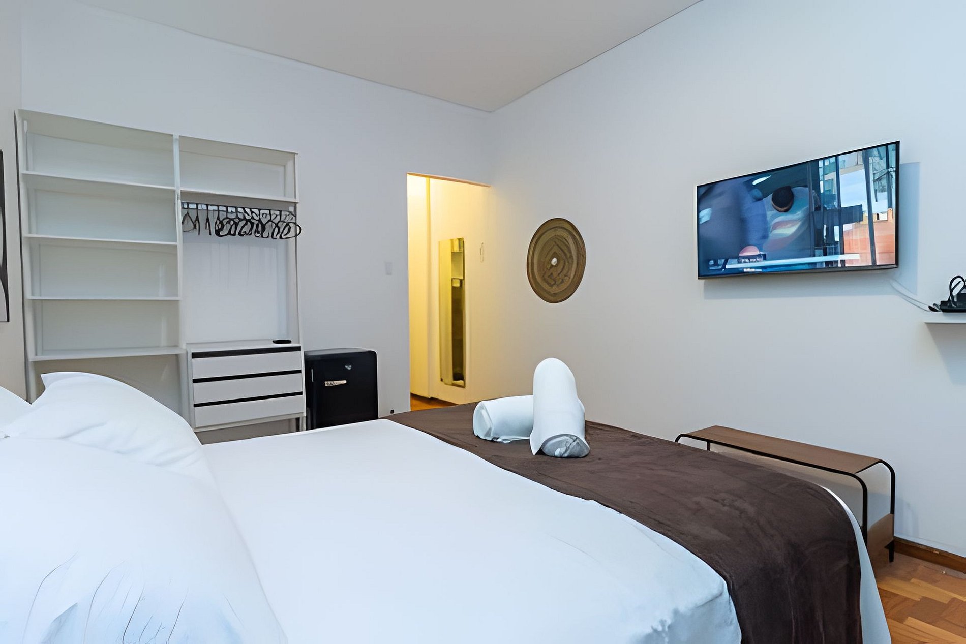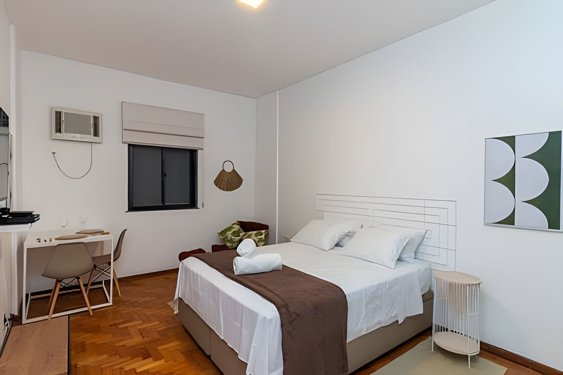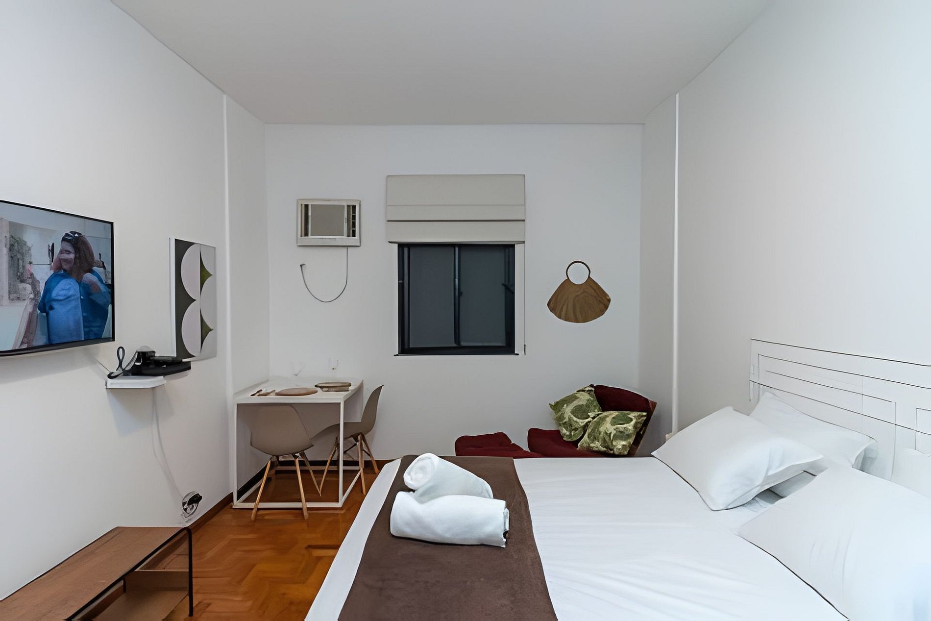 O ambiente é aconchegante e funcional, com cama de casal queen, ar-condicionado e TV com acesso a plataformas de streaming, perfeito para descansar após um dia explorando a cidade.