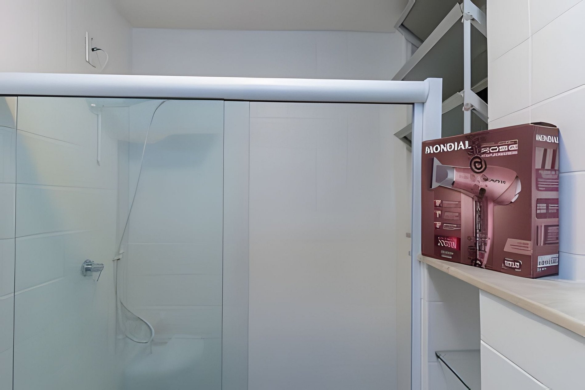 O banheiro é completo, com chuveiro quente, secador de cabelo e itens essenciais para o dia a dia.