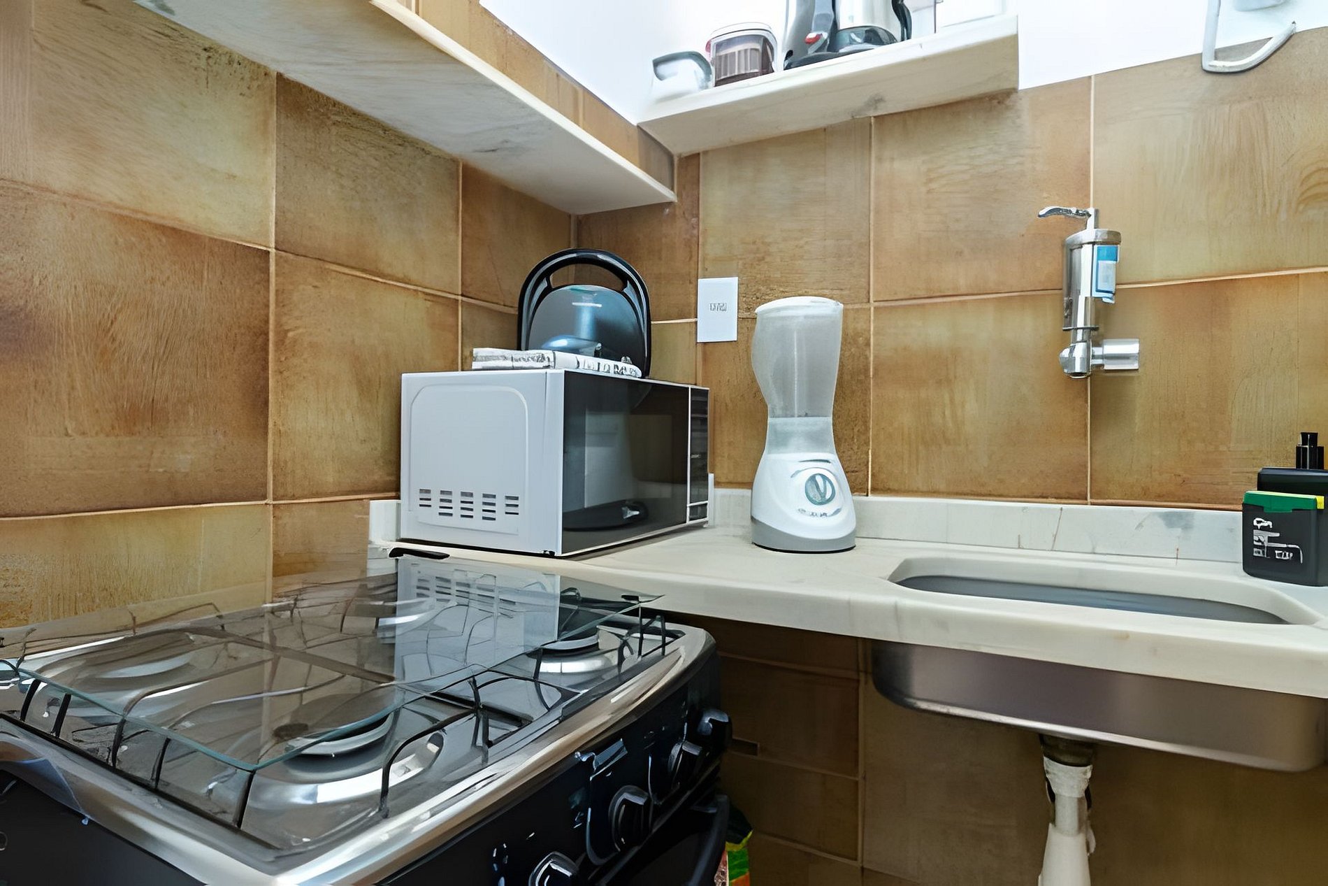 A cozinha é prática e bem equipada, com tudo o que você precisa para preparar refeições durante a estadia, incluindo forno, fogão, micro-ondas, cafeteira, liquidificador e utensílios básicos.
