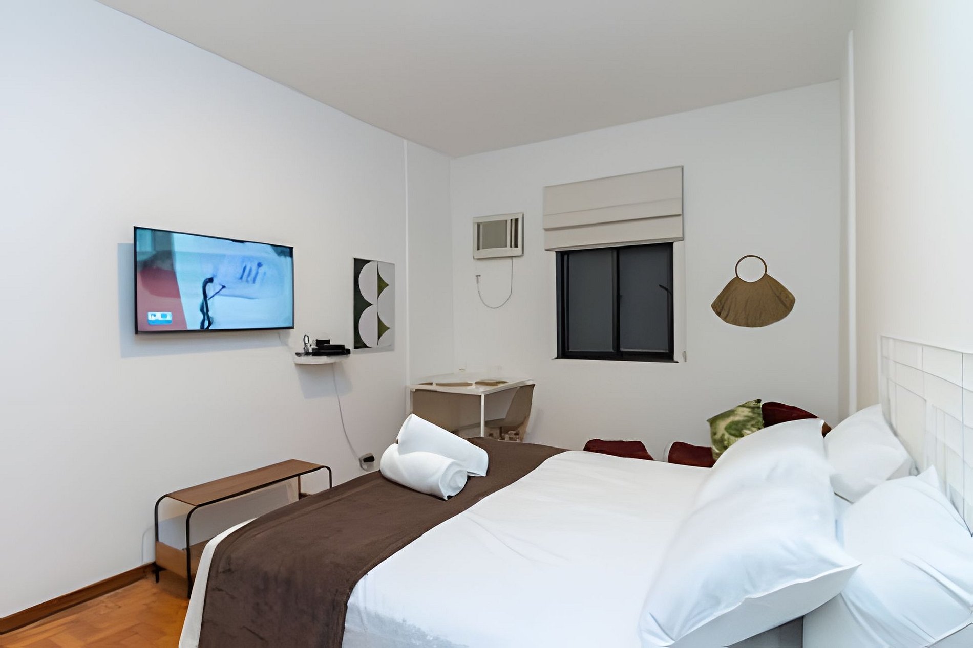 O ambiente é aconchegante e funcional, com cama de casal queen, ar-condicionado e TV com acesso a plataformas de streaming, perfeito para descansar após um dia explorando a cidade.