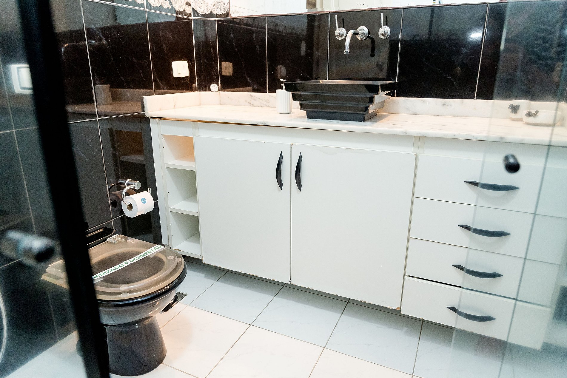 Não descarte papel higiênico, absorventes ou outros resíduos no vaso sanitário. Utilize as lixeiras disponíveis.