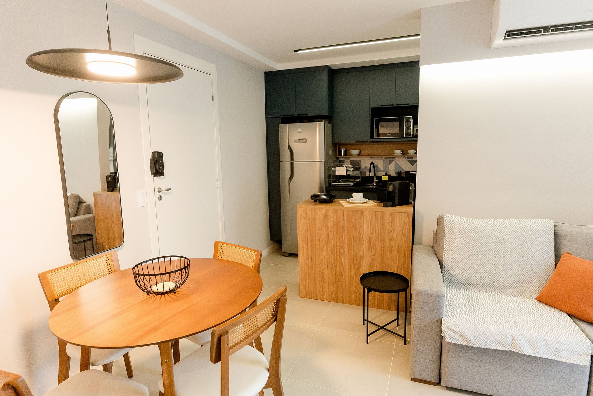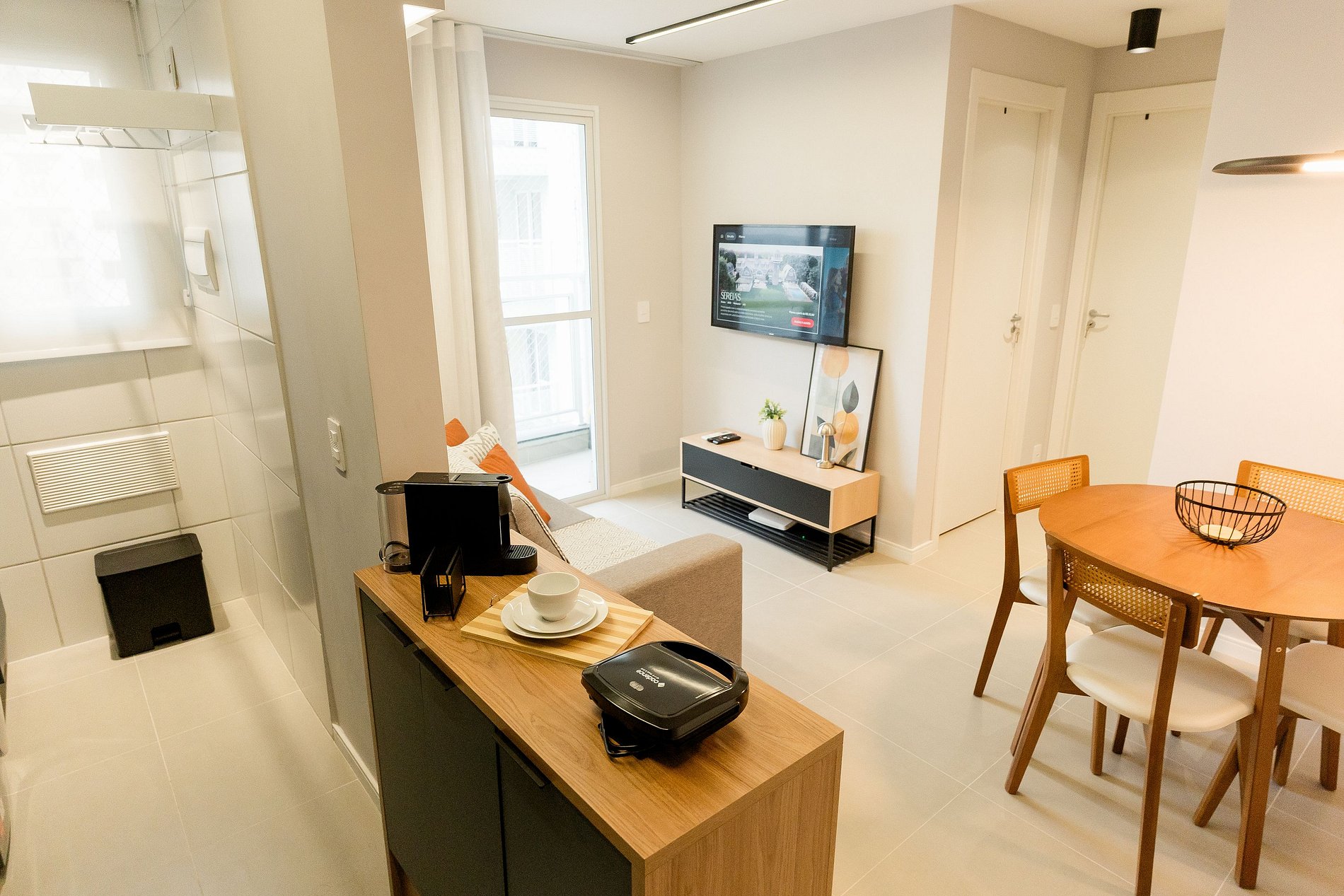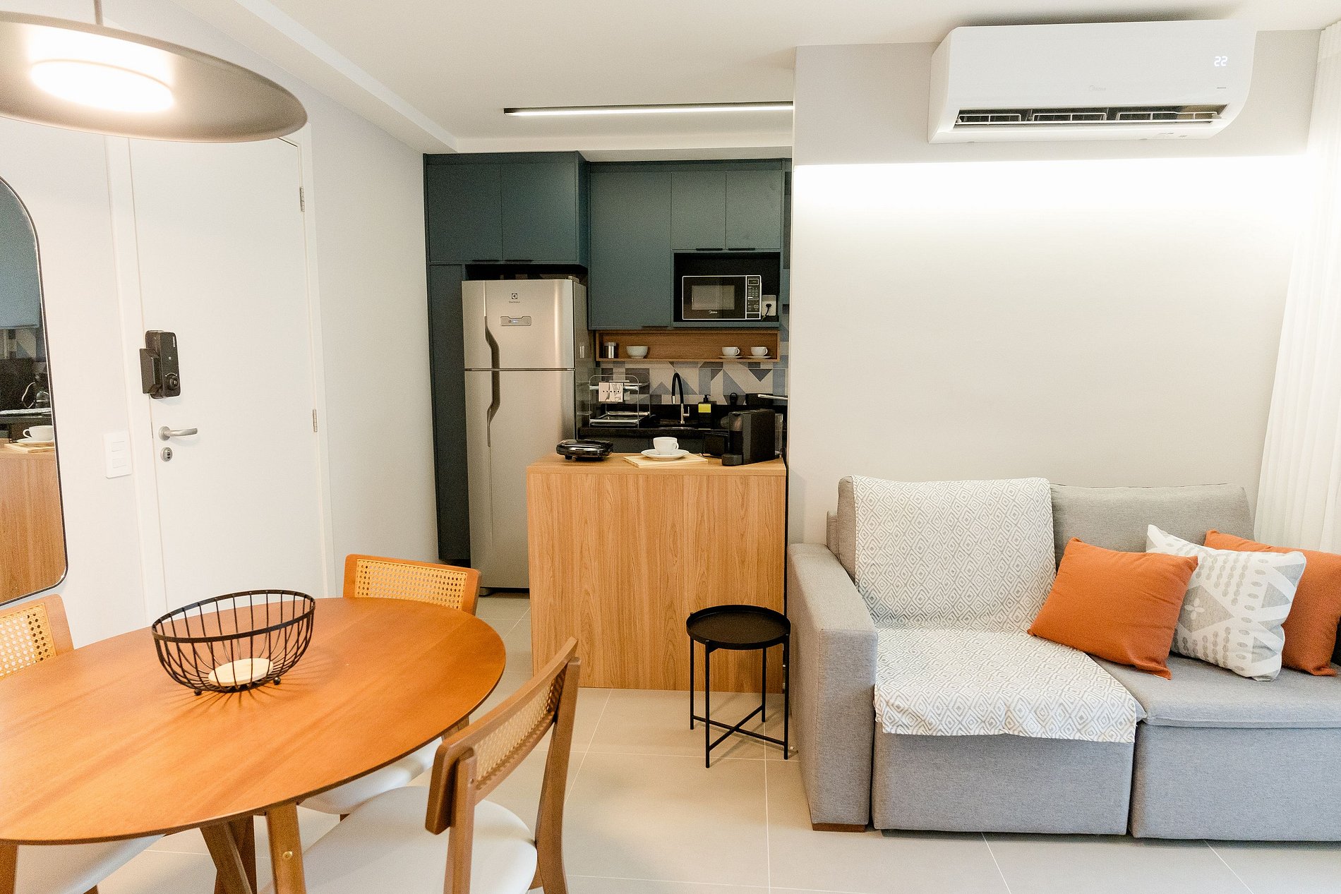 Uma estadia perfeita, com o conforto de um apartamento novo e a conveniência de um condomínio completo, próximo a serviços, transporte público e pontos turísticos.